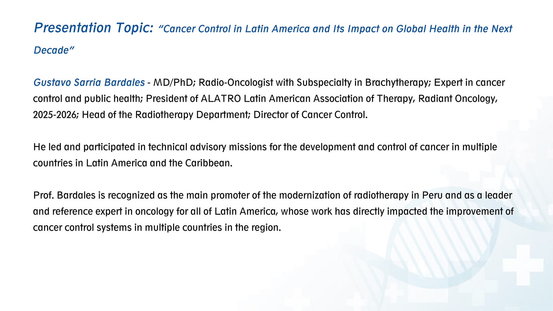 Affiliation:Latin American Association of Therapy, Radiant Oncology