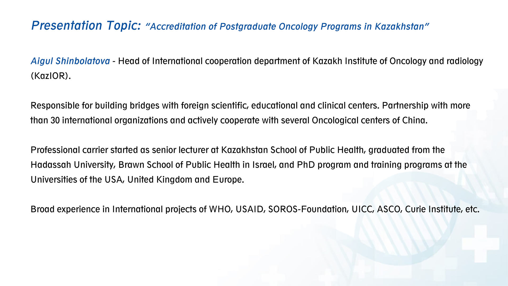Affiliation:Kazakh Institute of Oncology and Radiology