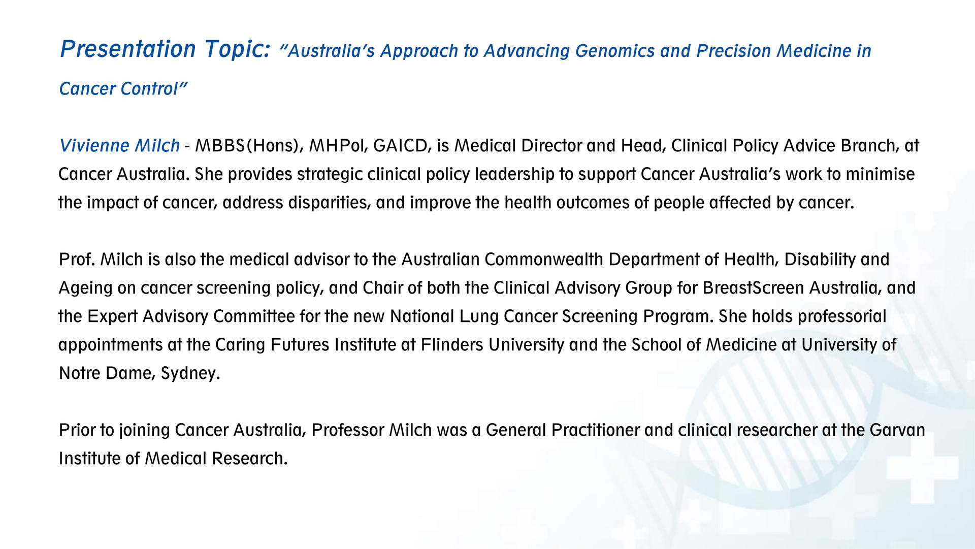 Affiliation:Cancer Australia